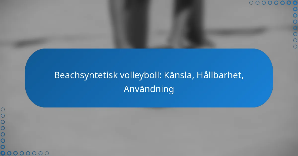 Beachsyntetiska volleybollar är designade för att ge en unik känsla under spel, kännetecknad av deras grepp, mjukhet och övergripande prestanda. Spelare uppskattar ofta den taktila feedback som dessa volleybollar erbjuder, vilket kan förbättra deras spelupplevelse.