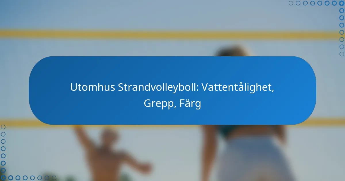 Utomhus beachvolleybollar är designade med specifika egenskaper som förbättrar prestationen i sandiga och våta förhållanden. Nyckelfunktioner inkluderar vattentålighet, grepp och färgvisibilitet, som alla har en betydande inverkan på spelet och spelarnas upplevelse.